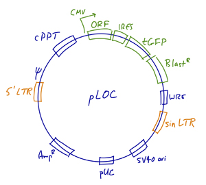 • Vector: pLOC lentiviral expression vector. Vector details are available here.